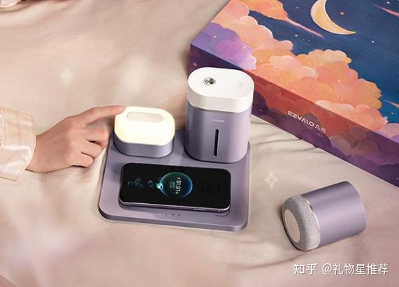 这是一款难得的兼具陪伴感、实用又高颜值的礼物。礼盒里面包含了无线充电板,蓝牙音箱,加湿器和拍拍灯,四款产品都很实用,可以陪伴女朋友的漫漫长夜。从入夜熄灯后开始,不仅暖光环绕,手机可以蓄能,还可以沉浸于小音响的曼妙旋律中,夏天空调房比较干燥,加湿器也可以让她更好眠。超级治愈又实用。