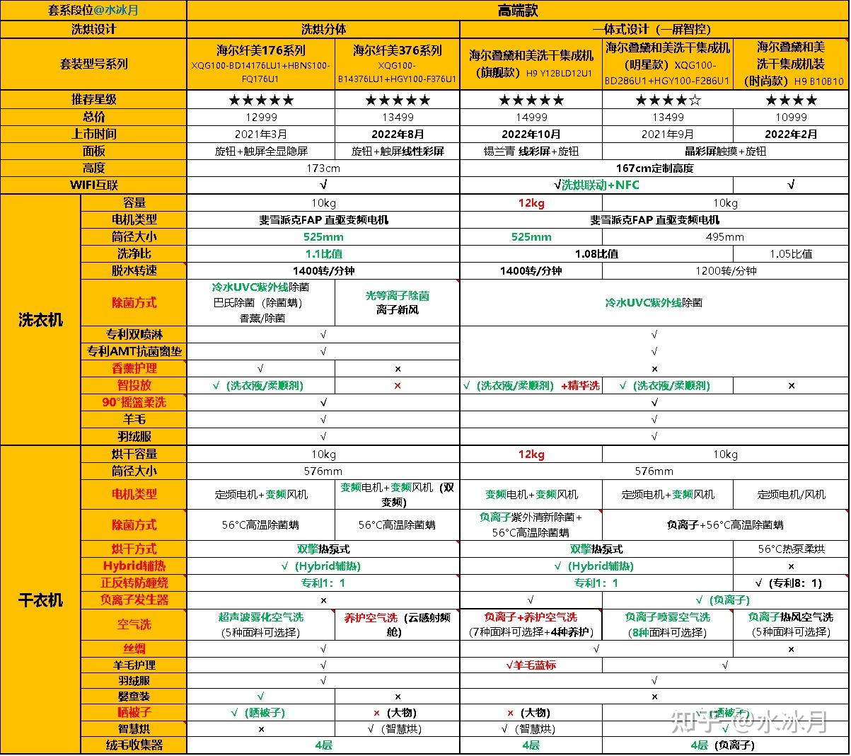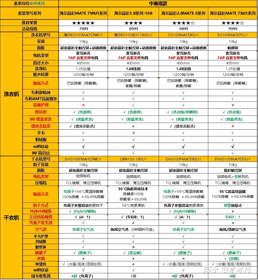 本文的特点就是将海尔洗烘套装 按照档次段位 划分,并且 有理有据(附详细型号对比参数表), 会针对每个套系的 洗衣机以及烘干机模块 进行前后 一一对比 ,深入剖析,并最终给出 推荐星级, 大家直接抄笔记即可。