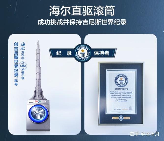 海尔直驱滚筒凭借1.882米堆高的硬币塔,在高速运转的直驱洗衣机上依然纹丝不动的实验,用 两次打破吉尼斯世界纪录 来宣传其产品的平衡稳定,DD电机绝对少不了功劳。