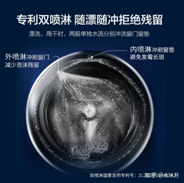 专利双喷淋技术,海尔洗衣机标配。 在漂洗、甩干时,内外喷淋两股单独水流分别冲刷窗门窗垫,内喷淋冲刷窗垫,避免发霉长斑;外喷淋冲刷窗门,减少泡沫残留,进而进一步减少细菌滋生的温床。