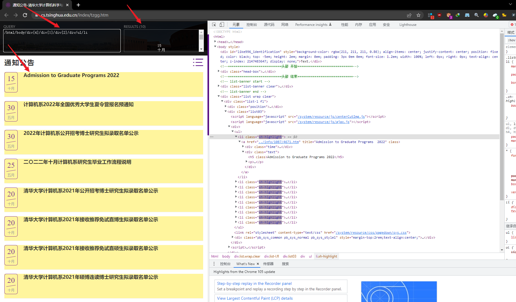 - Huginn对于js的动态页面抓取,需要借助一些第三方的工具,我们的helloworld不考虑那种难度的页面,我们考虑一些静态页面,比如一些学院的官网通知之类的,这里就以清华大学计算机学院的通知为例进行抓取展示,其他类型的通知抓取方法类似。