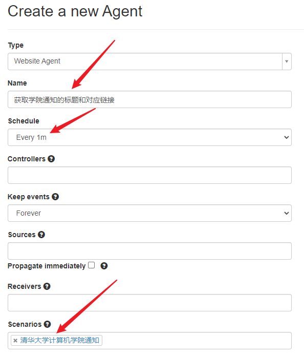- Scenarios:选择清华大学计算机学通知那个任务组(具体根据你之前的命名来)