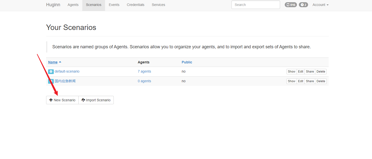 - 新建一个任务组Scenario,然后在Scenario下面再新建两个对应的Agent(一个获取信息,一个输出RSS信息)即可