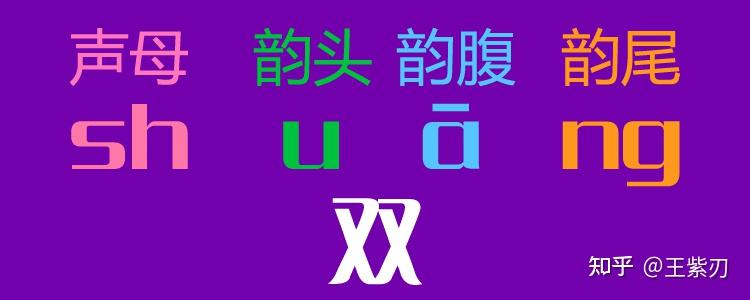 双 shuang,有声母sh、韵头u、韵腹a和韵尾ng。