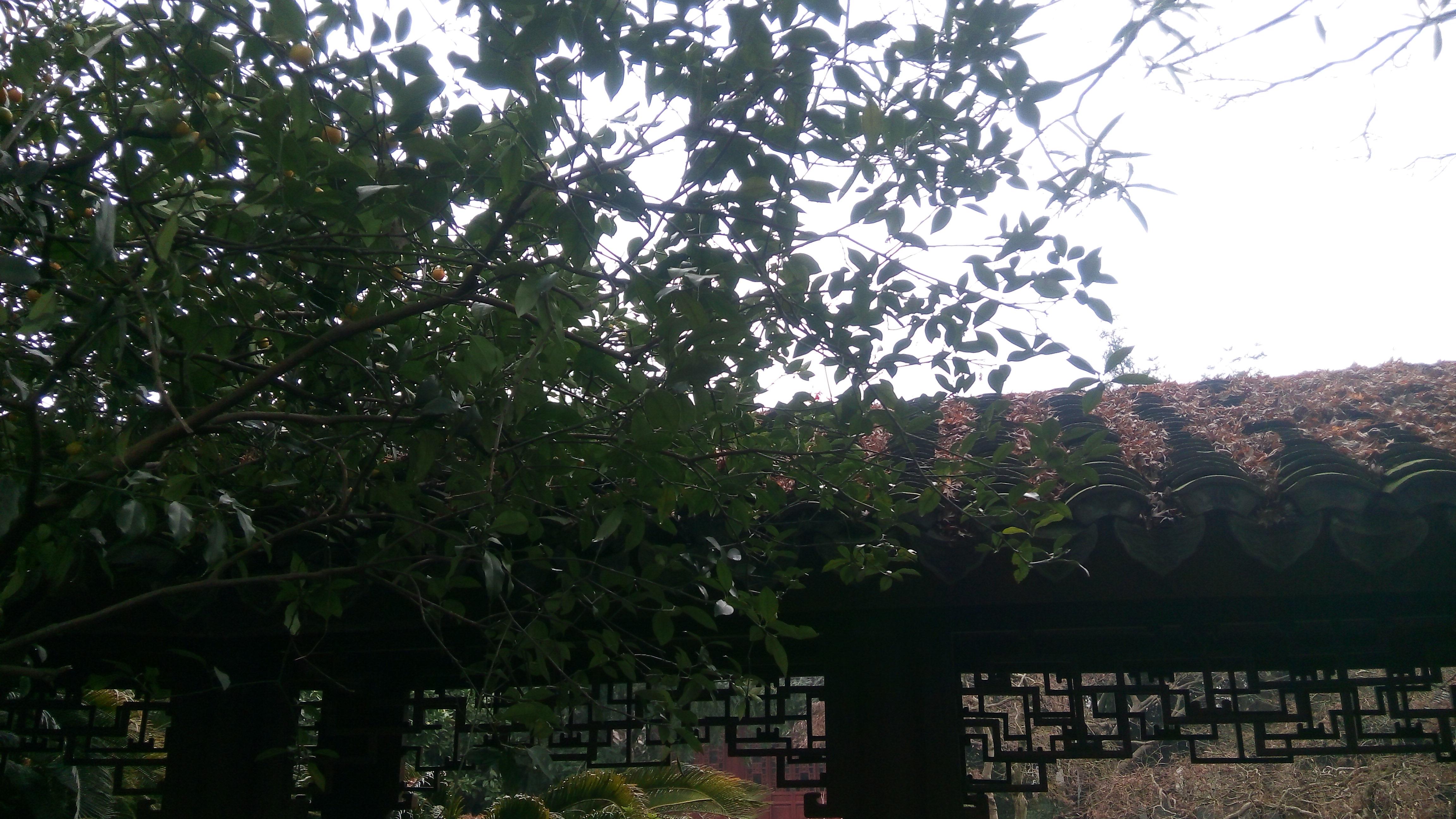 各种花木,假山下面依稀的流水,比较主观就不上图了。最喜欢小桔子和廊顶的落叶。