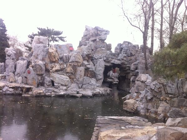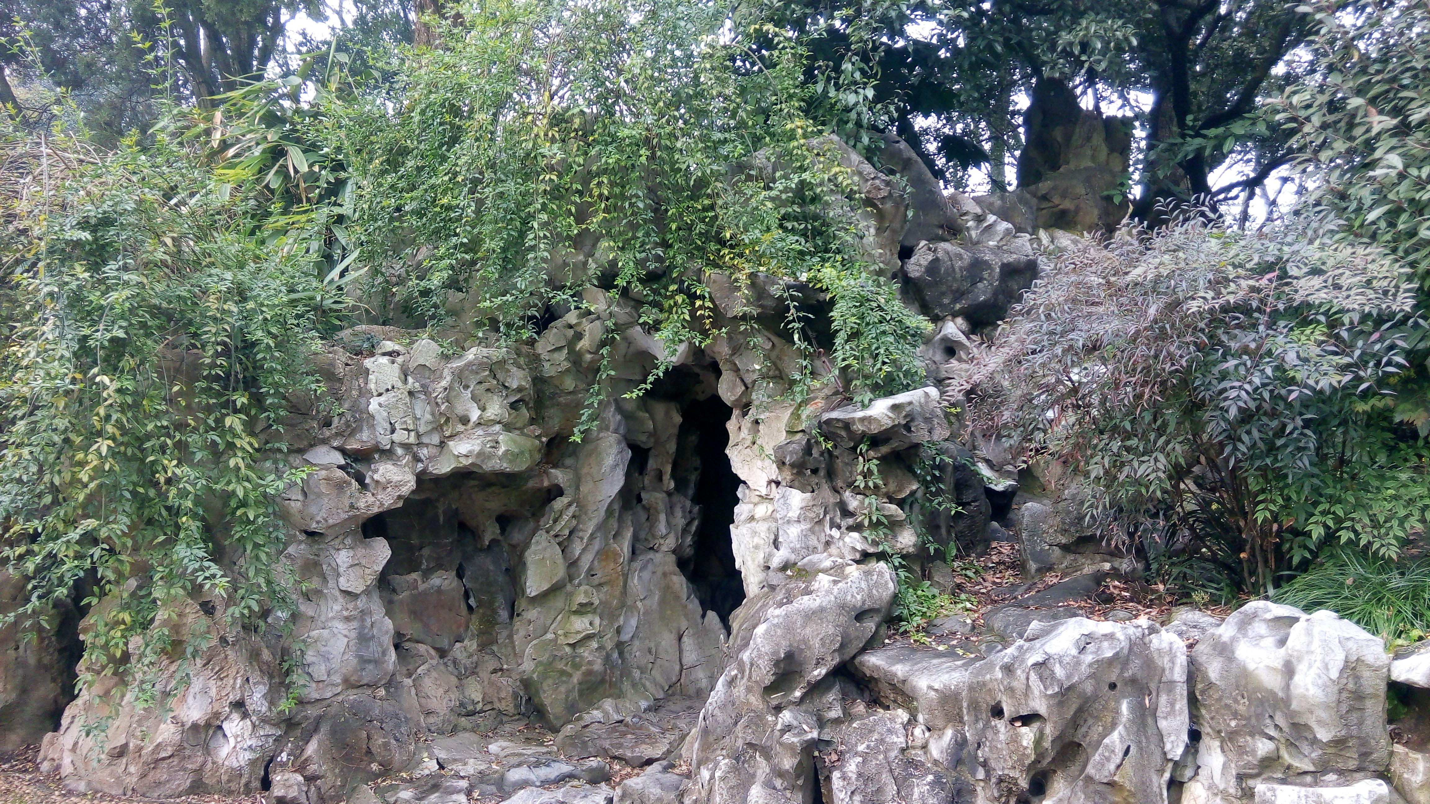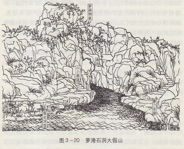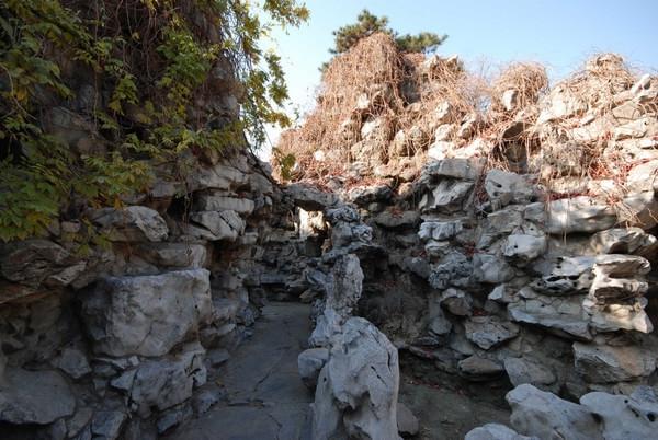 在实景中,这个路阻贾政的萝港石洞大假山,个头偏小了点。行人通过有富余,元妃的船却是一定通不过去的。