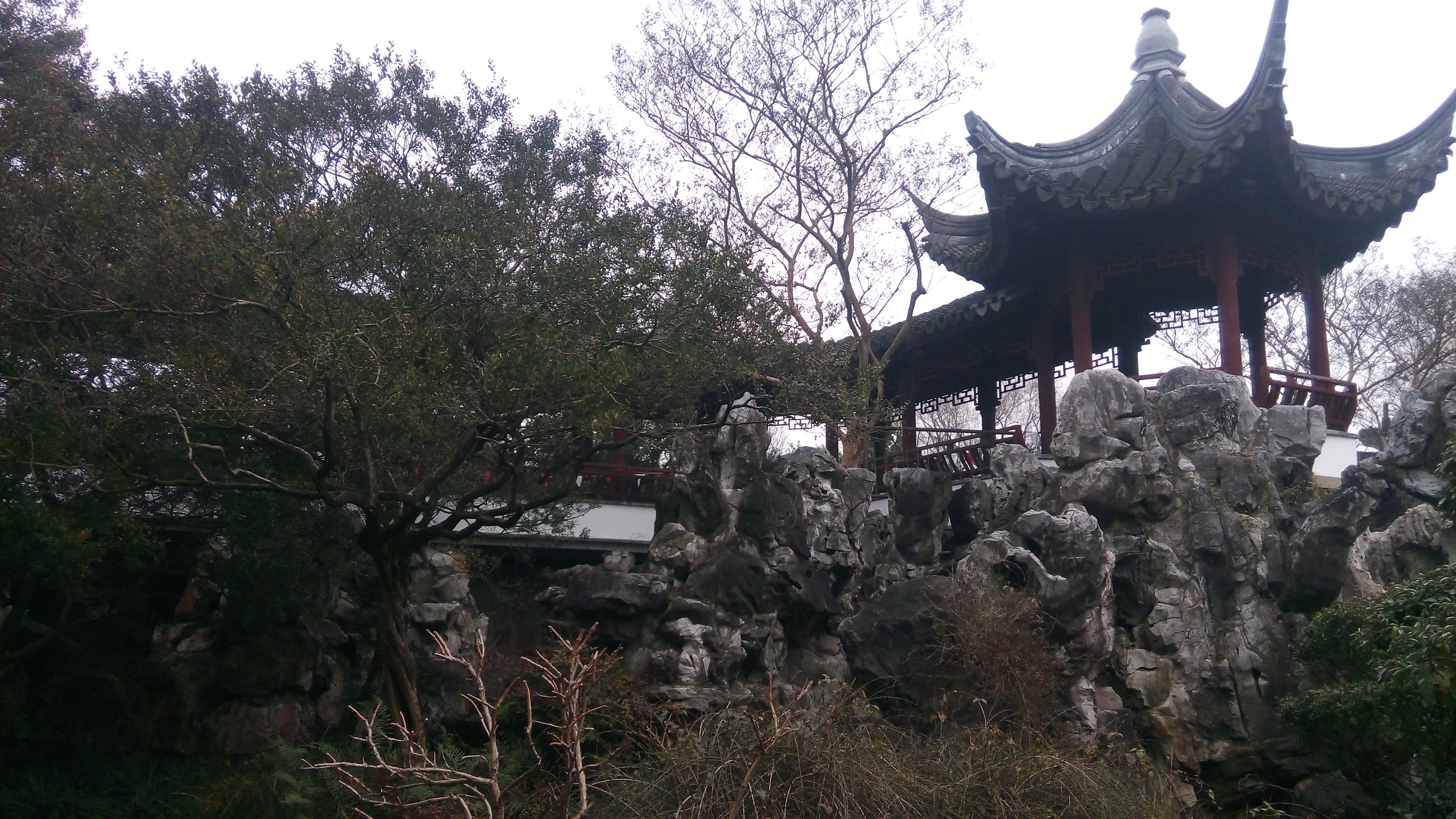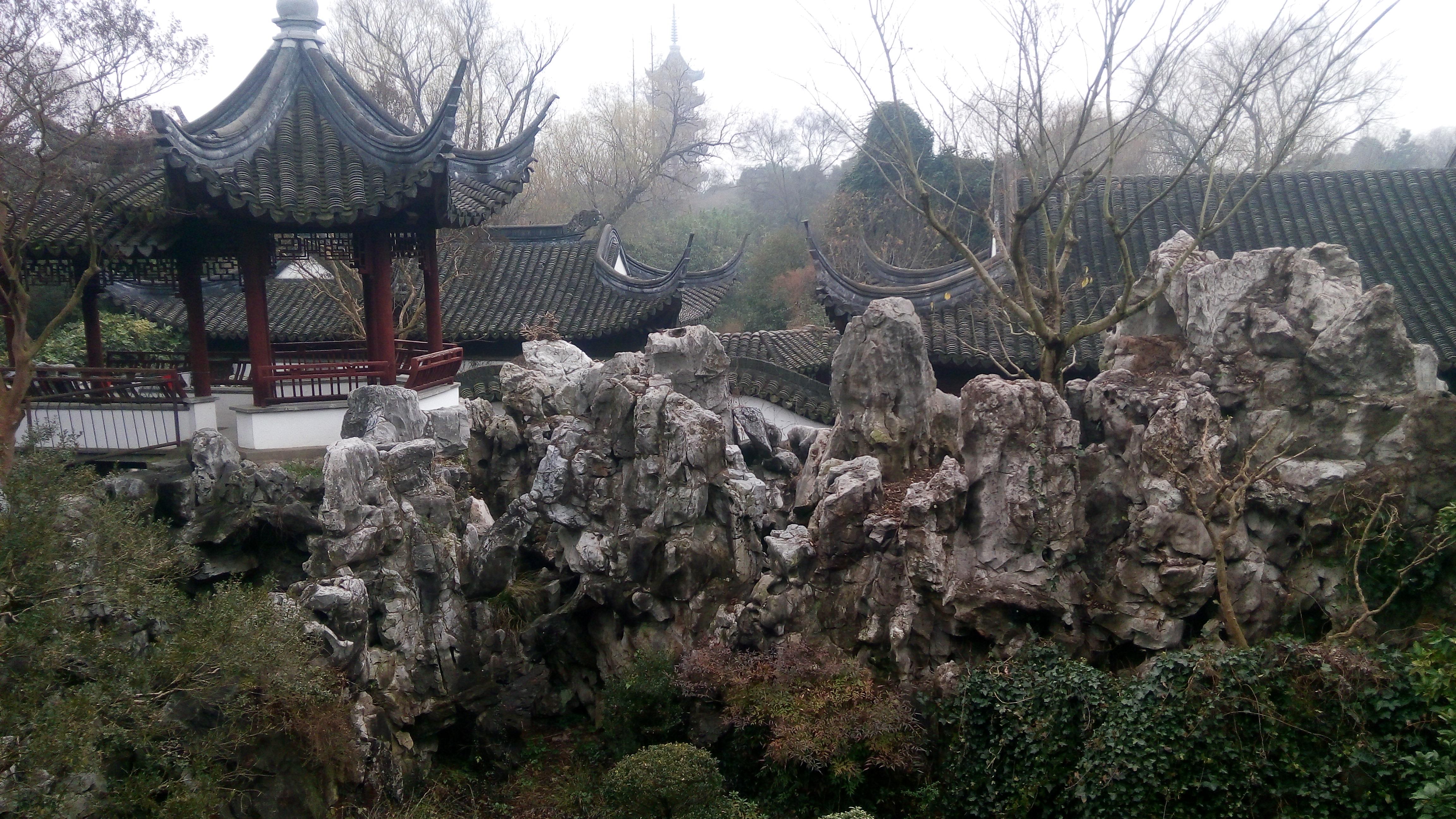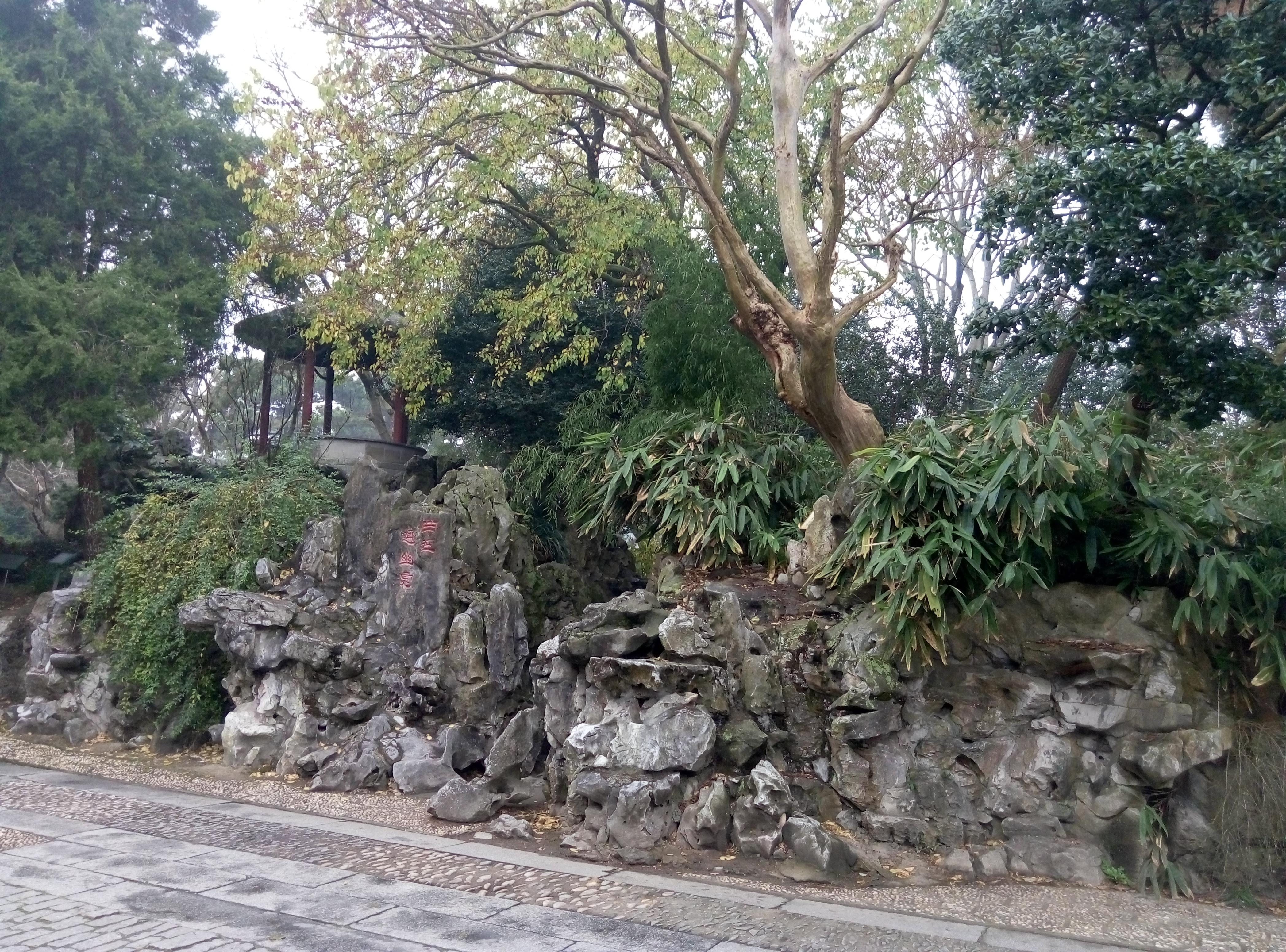 门口有卖手绘游览图,没有买。就想信步而行,任意所之。换票入园后迎面假山。