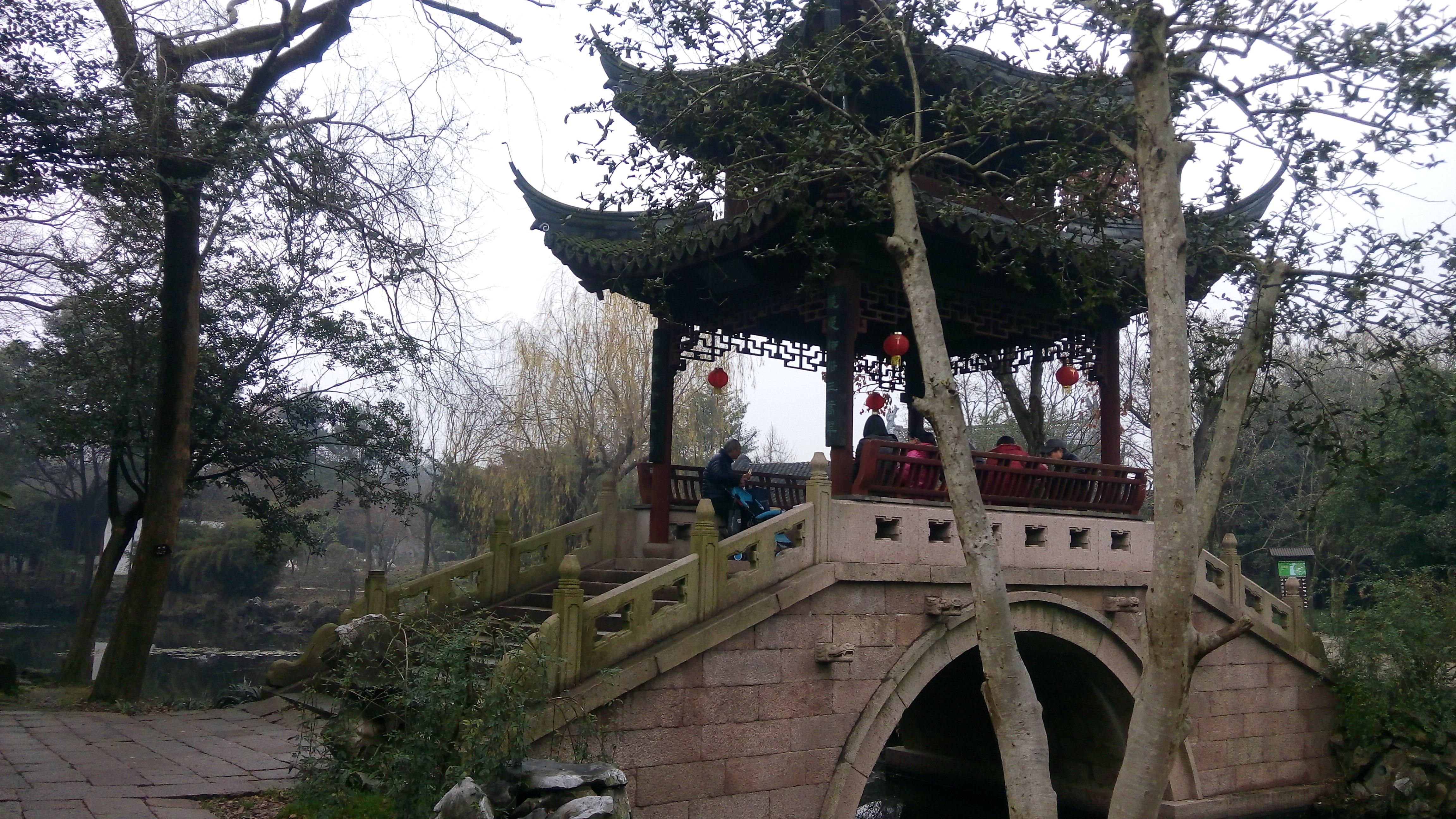 右转走起,前方有亭有桥。可惜正当中午时分,有人在用餐。