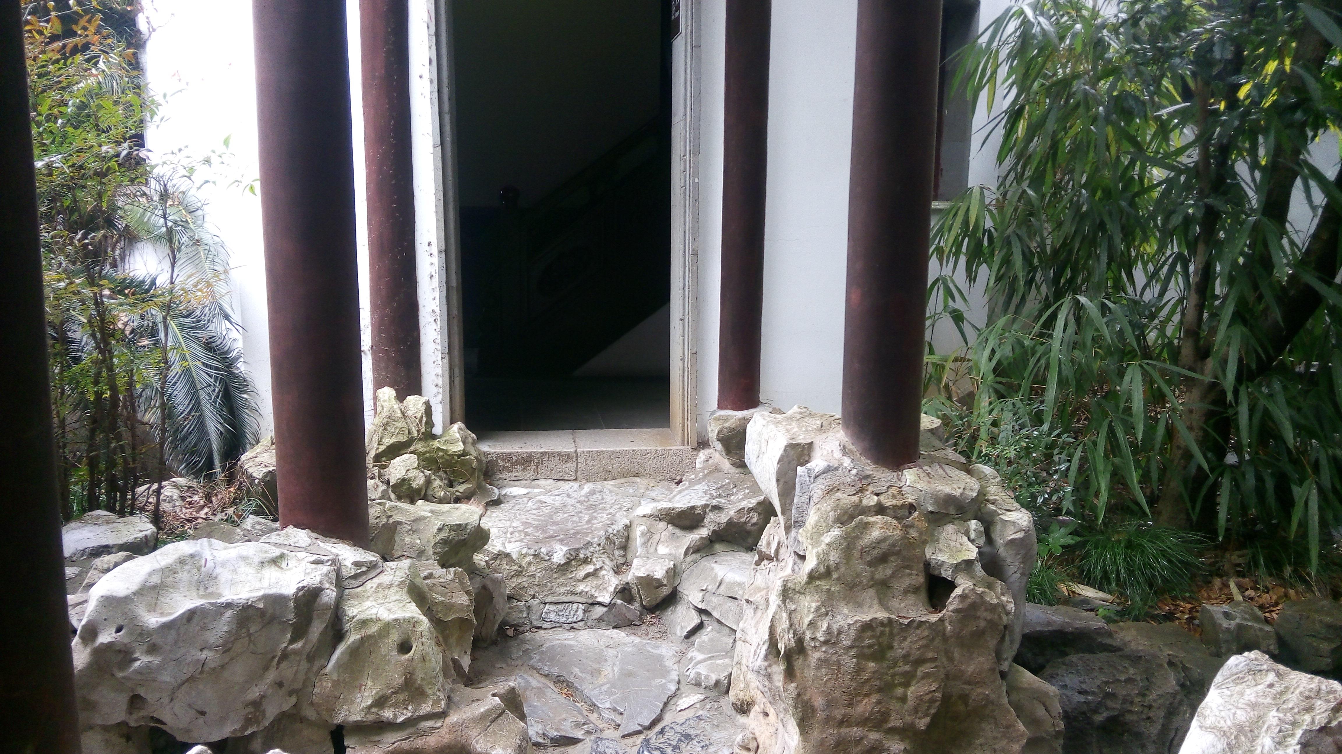 几进的院子里各种建筑都不错,后边那个是顾恩思义楼,于是用山石挡住。