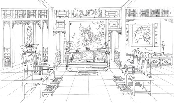 贾母院主屋陈设。