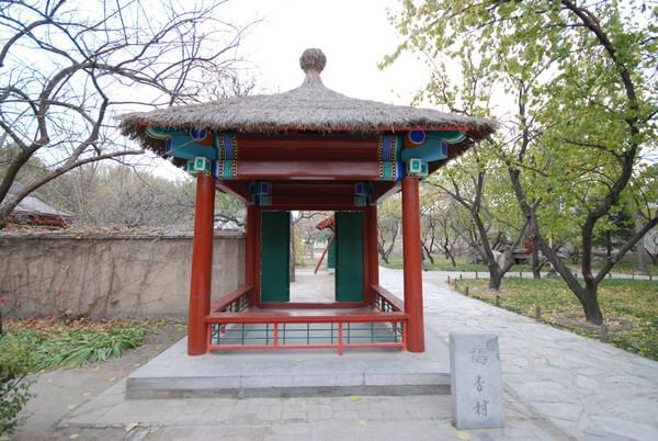 小院门外是一带黄泥筑就的矮墙,墙头皆用稻茎掩护。杏花开放时节,数百株喷火蒸霞一般灿烂。院里数楹茅屋茆堂,纸窗木榻,一洗富贵之气。院外是由桑榆槿柘各色树稚新条转折编就的青篱。篱外山坡下,阡陌土井,分畦列亩,佳蔬菜花,漫然无际。好吧,我也起了归农之意了。且看颦卿捉刀歌功颂德的《杏帘在望》: