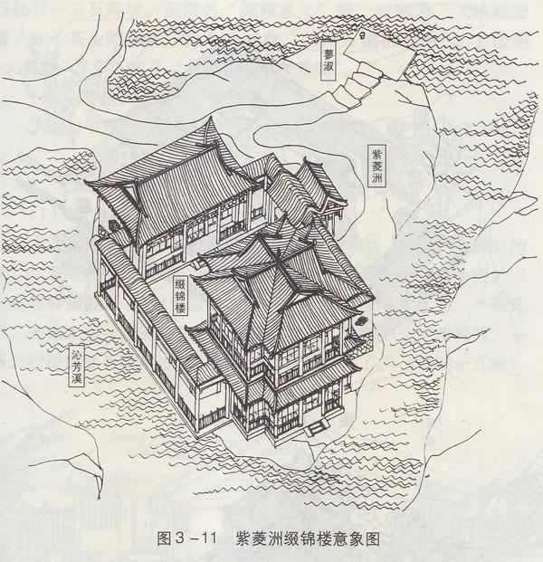 重屋曰“楼”。缀锦楼是建在紫菱洲上的一座临水建筑,也是大观园里唯一两层的居所。大观楼侧东阁也叫缀锦,非是一处。