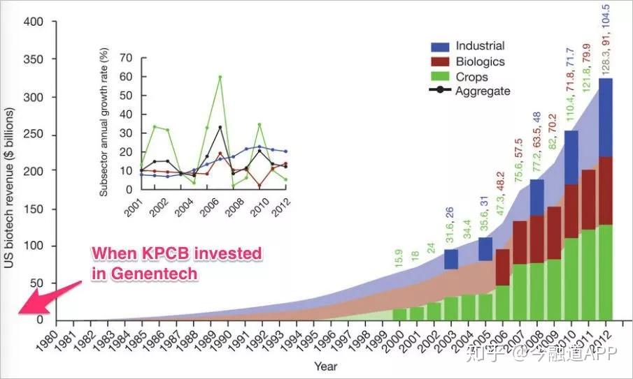 Genentech 是生物技术行业的先行者,为Kleiner Perkins Caufield&Byers等投资者带来了“历史上最大的收益”。