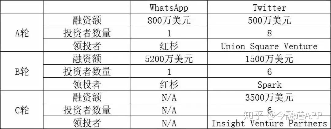 WhatsApp VS Twitter的融资记录