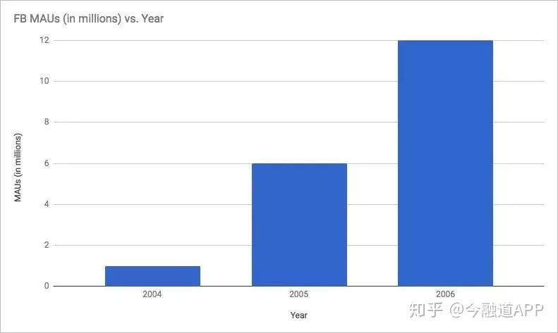 另一方面,想象一下,从2006年C轮融资的潜在投资者的角度来看Facebook的月度活跃用户增长情况。