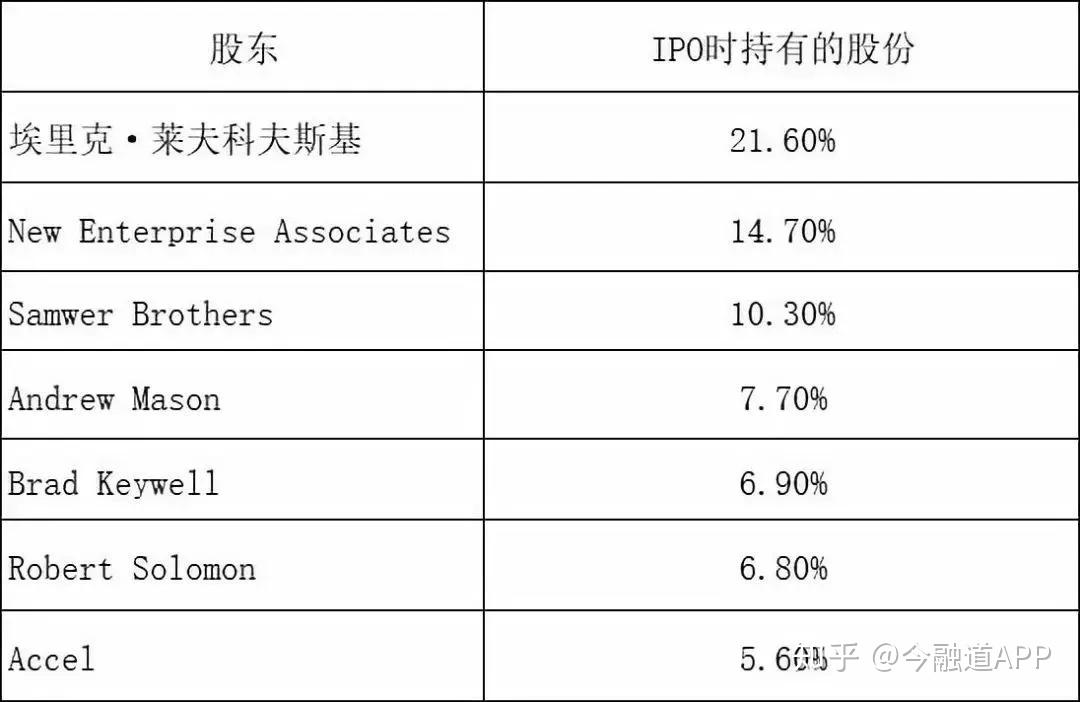 在IPO时,莱夫科夫斯基持有了公司21.6%的股份,是第二大投资者New Enterprise Associates的1.5倍,是联合创始人兼首席执行官安德鲁·梅森(Andrew Mason)的2.8倍。
