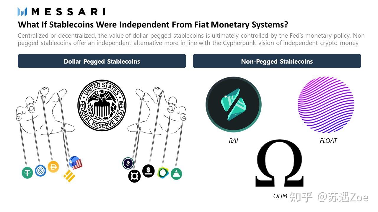 幸运的是,数字货币行业已经注意到相关问题,最近也启动了一批项目,旨在创建不与法定货币挂钩的稳定币。这些项目被称为“非锚定稳定币”,它们为以太坊的货币体系提供了更多机遇,可以在消除对法定货币的依赖的同时实现稳定。在此过程中,“非锚定稳定币”不仅会将以太坊的货币体系从中央银行的法定货币影响中解放出来,还会引入适合整个以太坊经济的稳定币。