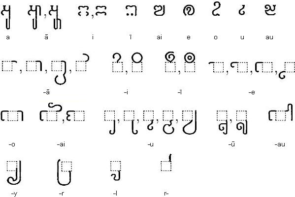 这种被称为元音附标文字(abugida)是东南亚常用的、用来书写的文字体系。效果如下图: