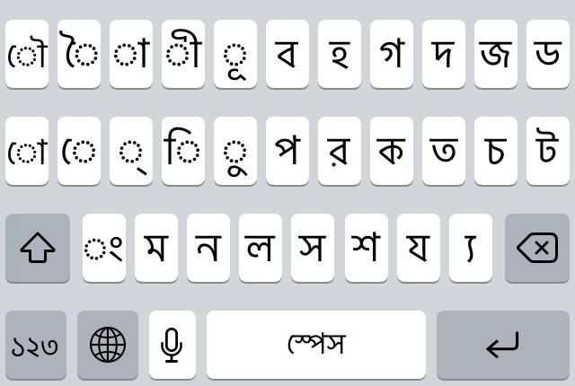 许多右衬线都退掉了,有的元音还写成了弯的(比如কৈ,কৌ,কো,কে),字母都是圆的,只剩了上基线。