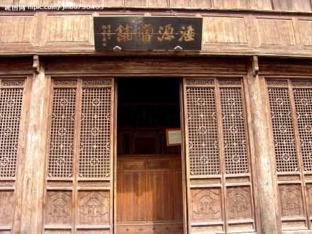 在应家桥和南花桥之间,五开间门面,楼上楼下,1.8米高柜台。据《乌青镇志》记载,乌镇镇典当行最多时达13家,到了1931年,只有汇源当1家还在支撑。当铺四周有高墙围护,靠外墙脚均用一人头高的条石筑就,使盗贼无法翻墙、掘洞,更有高出屋顶的更楼有人日夜瞭望。大门用不易着火的厚实的银杏木制成,外包铁皮,内有坚实的门闩、落地闩。进门有关帝堂,以示忠义为本,兼有驱除邪恶的企求。头埭为店厅,是收兑典物的交易场所,高柜台、木栅栏。典物者递上衣物,听凭当里朝奉居高临下吆喝开价,低人一头。后埭是库房。为防火,埭与埭的舍房各不相连,庭院中放满水的七石缸,称“太平缸”。汇源当铺是徐东号第九世孙徐焕藻(茗香)创办于道光年间。