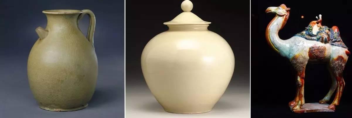 ▲上图分别为:越窑青瓷&邢窑白瓷&唐三彩