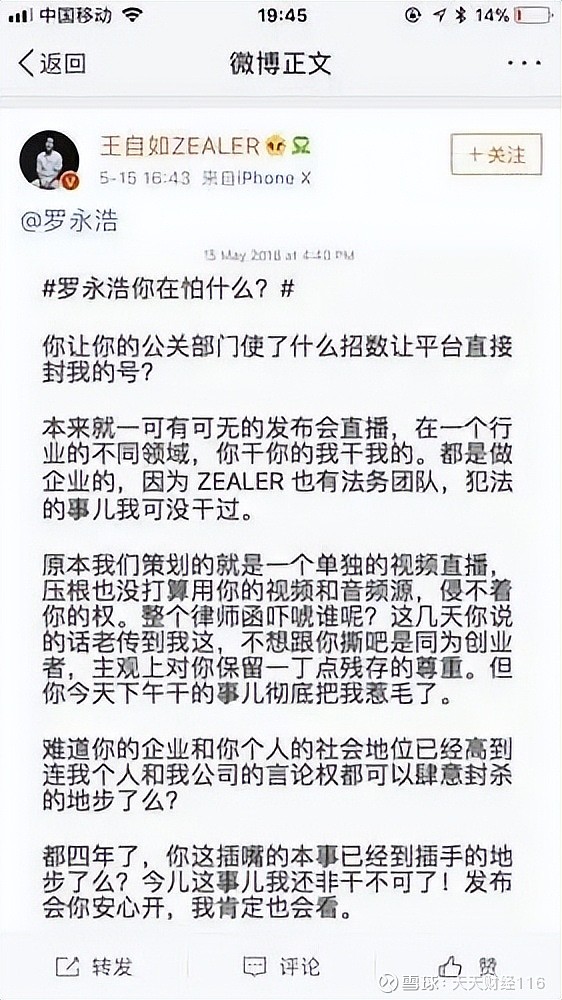 不过,王自如与罗永浩之间的战争并未就此结束,此后双方又明争暗斗好几个回合。