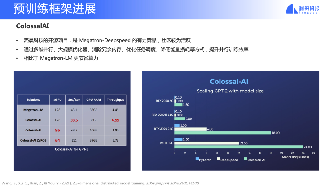 除了模型之外,底层的预训练框架也是非常重要的。最近一年,我们可以看到预训练框架领域有了新的进展。