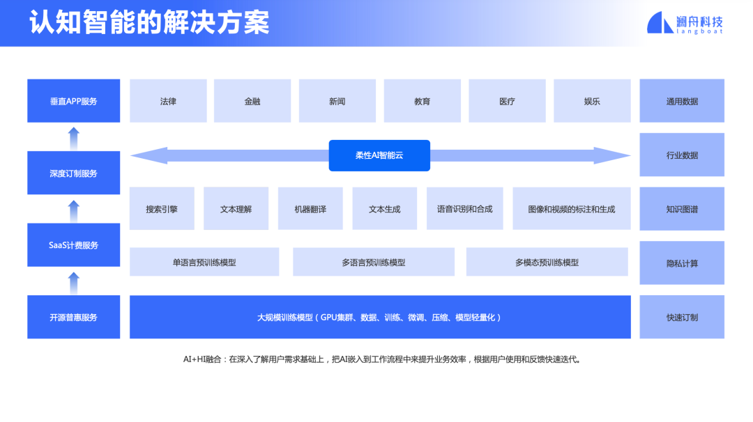 我个人认为预训练模型是目前最具颠覆性的科技创新。可是再伟大的科技创新也要考虑如何推动产品的创新和商业模式的创新。如何从工业界观点来看,把科技创新贯穿到产品创新,贯穿到商业模式的创新呢?也就是说如何实现认知智能的落地?