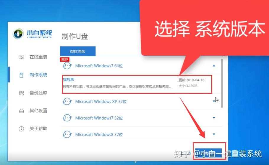 7、选择要安装的系统,然后点击开始制作,下图所示: