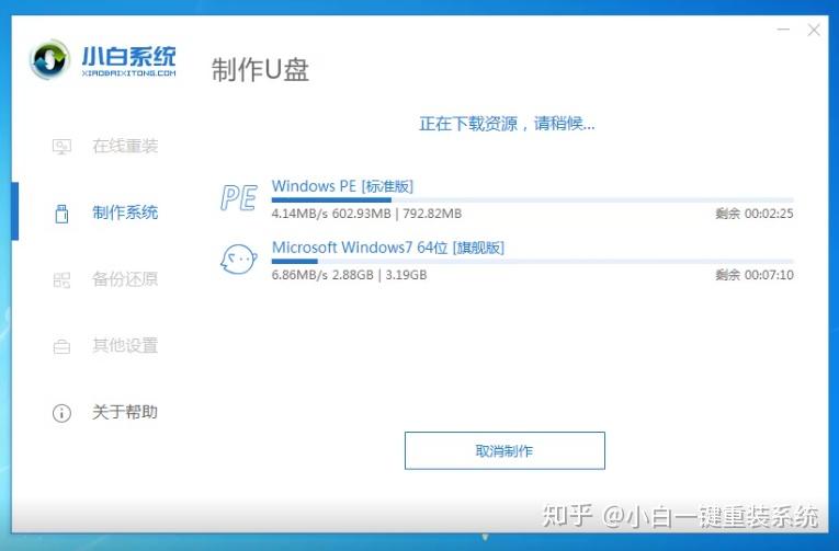 8、开始下载系统镜像包和制作U盘工具,期间不要操作电脑哦,下图所示: