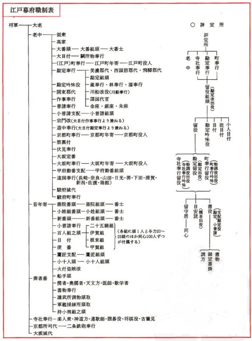 大目付 :由老中支配,作为老中的耳目,进行对大名、交代寄合、高家的监察等,负责幕政一切的监察