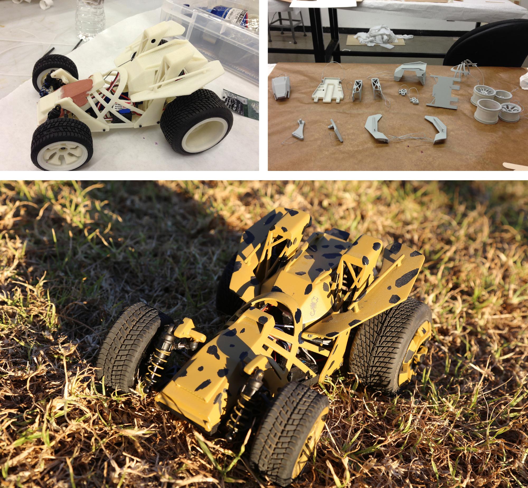 最后的模型制作和成品图,最后的车子是可以工作的,但是相关视频在国内好像不好打开,有兴趣的朋友可以在我的网站上看到更详细的设计流程
