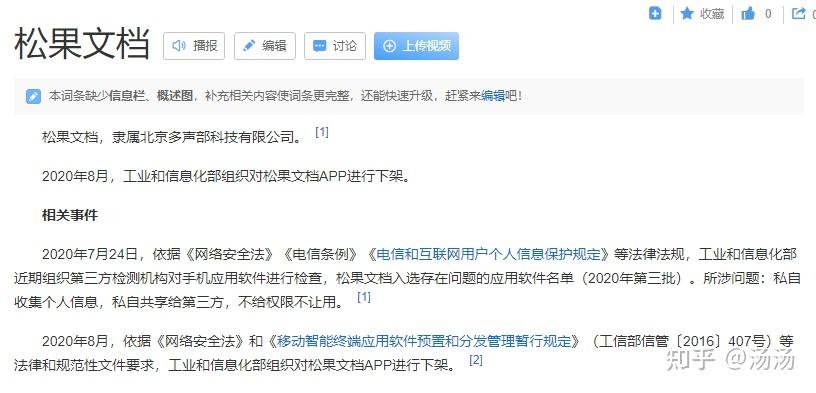 百度为什么要收购一个侵害用户权益的在线文档呢?我又看了一下百度百科的松果文档词条