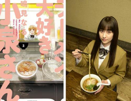 这部番剧比较有意思的是,在漫画连载时,其在2015年被改编成了一部真人日常剧,几个爱吃拉面的妹纸在一起,品尝拉面(这明明就是在宣传日本文化啊喂),由早见朱莉主演;又在2016年的真人SP中,几位妹纸又与名门公子鸣人比赛吃拉面(?!)。看一月喜剧新番,还是看美女吃面?选择吧,少年!