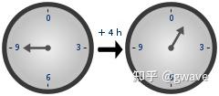 差不多同时(1798),高斯(Carl Friedrich Gauss, 1777-1855)在其经典的 数论 著作中提出了 模算术 (Modular Arithmetic),其逻辑也与 群 一致。下图中,时钟的模数为12, 9+4=13\equiv1 。