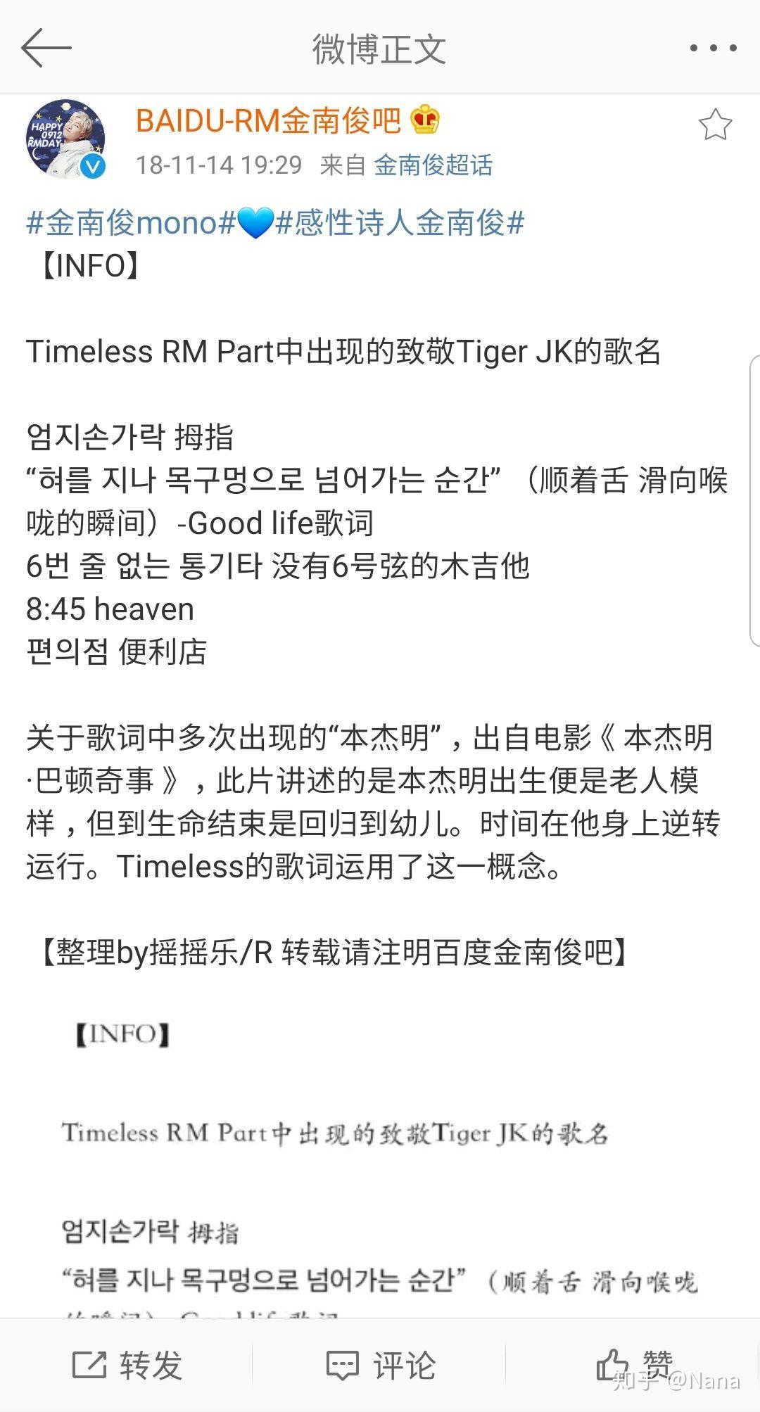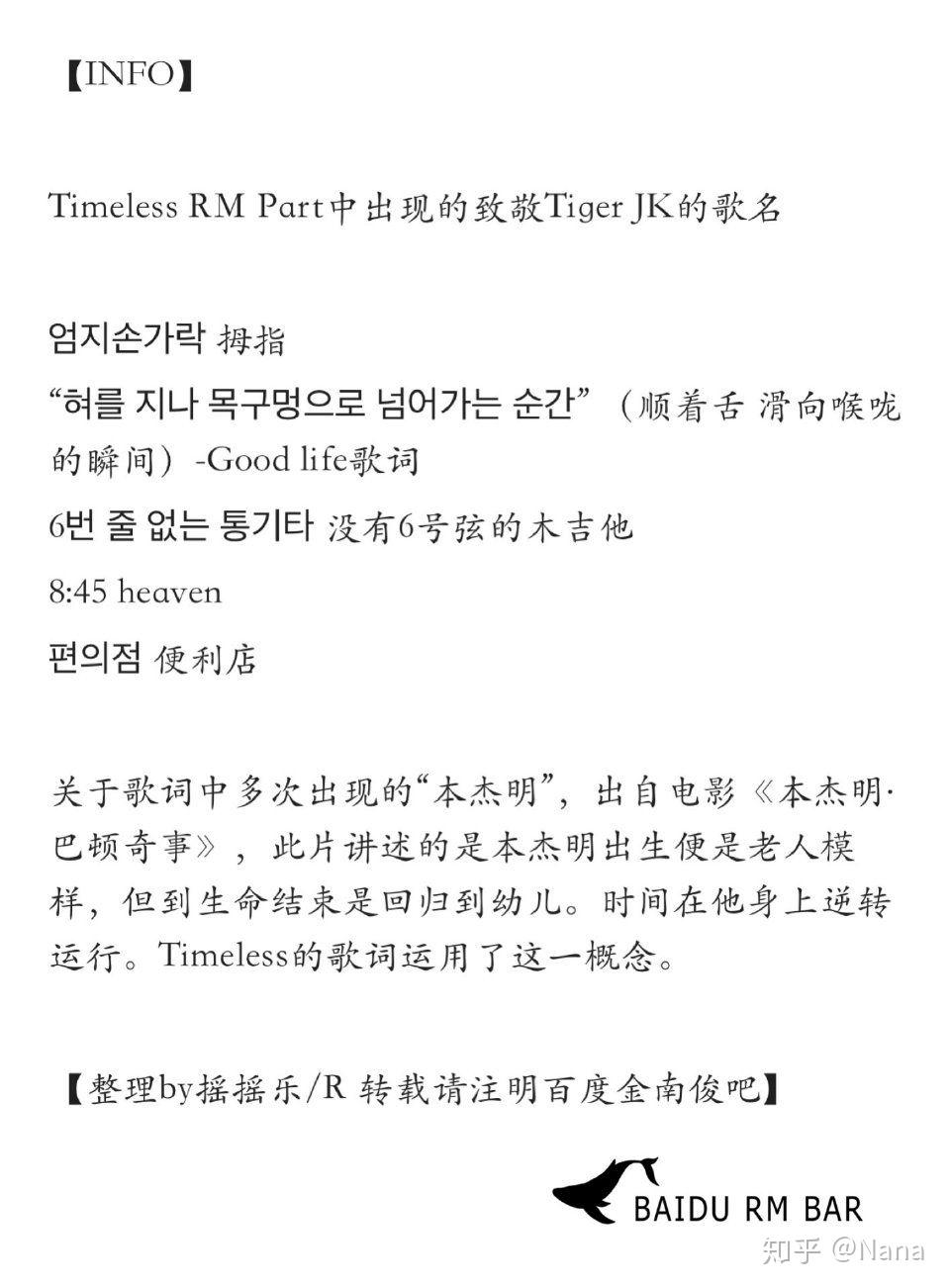 金南俊-Timeless RM Part中出现的致敬Tiger JK的歌名