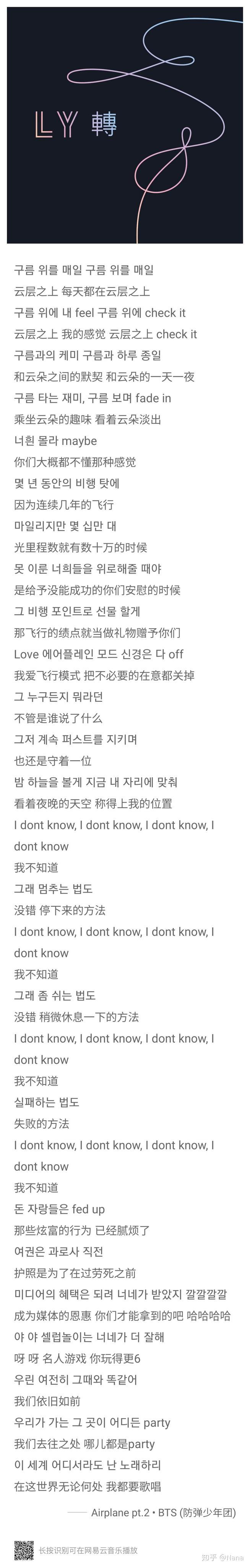 “Airplane pt2 作为hope个人mixtape收录曲的延长线,饱含了成员们在进行世界巡演期间感受到的情绪” 谢谢你们从不吝于传达自己真实的想法 这样复杂的情感阿米们感受到了。我们之间的爱永远不是单向箭头。-网易云音乐网友 双皮奶吃人