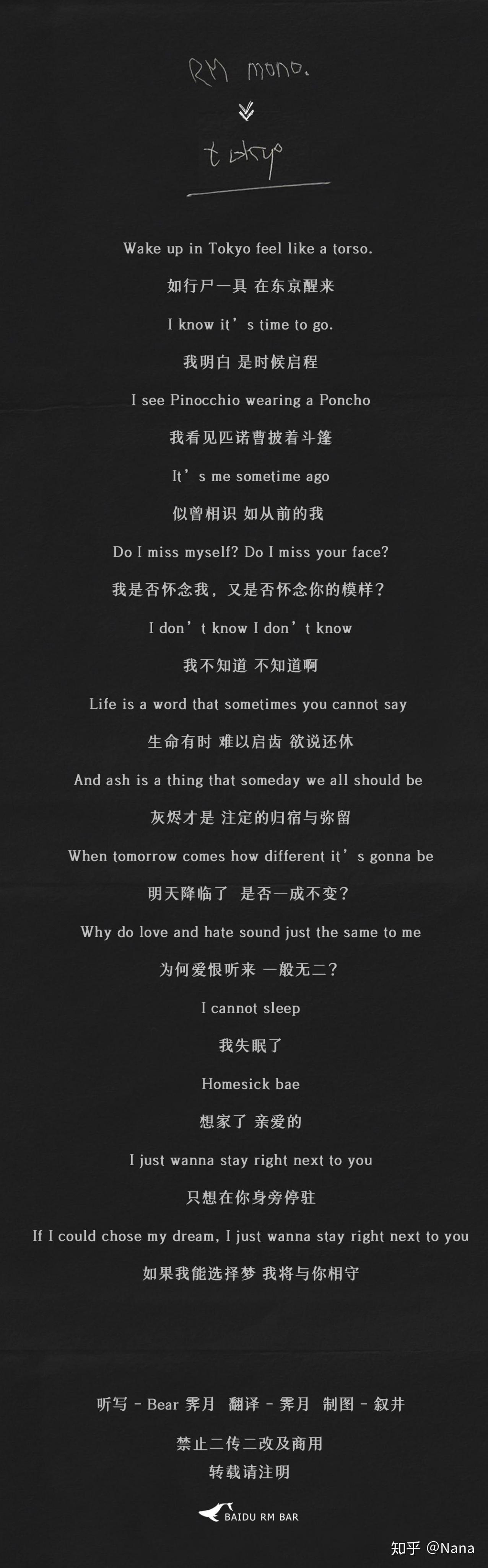 南俊说不放歌词是因为希望大家就算语言不通也能感受到他的表达,就像一千个读者有一千个哈姆雷特,每个人能用心理解就好了。