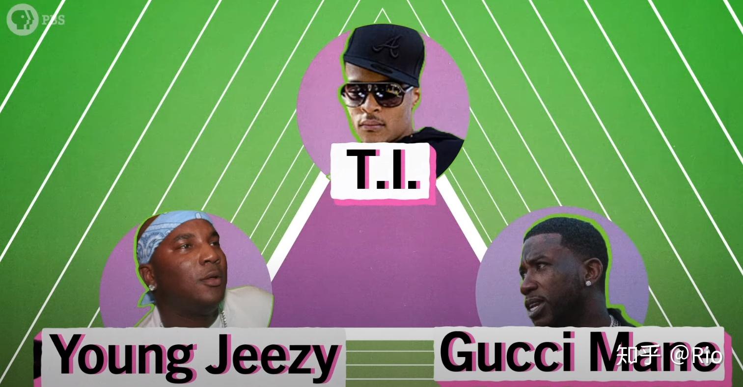 于是到了2000年,出现了3位无可争议的Trap音乐的先驱人物,那就是T.I.,Young Jeezy还有Gucci Mane,他们3位才是把Trap这个音乐形式展现给了大众(在2000年之前对南部的Hip Hop音乐统称为Dirty South)