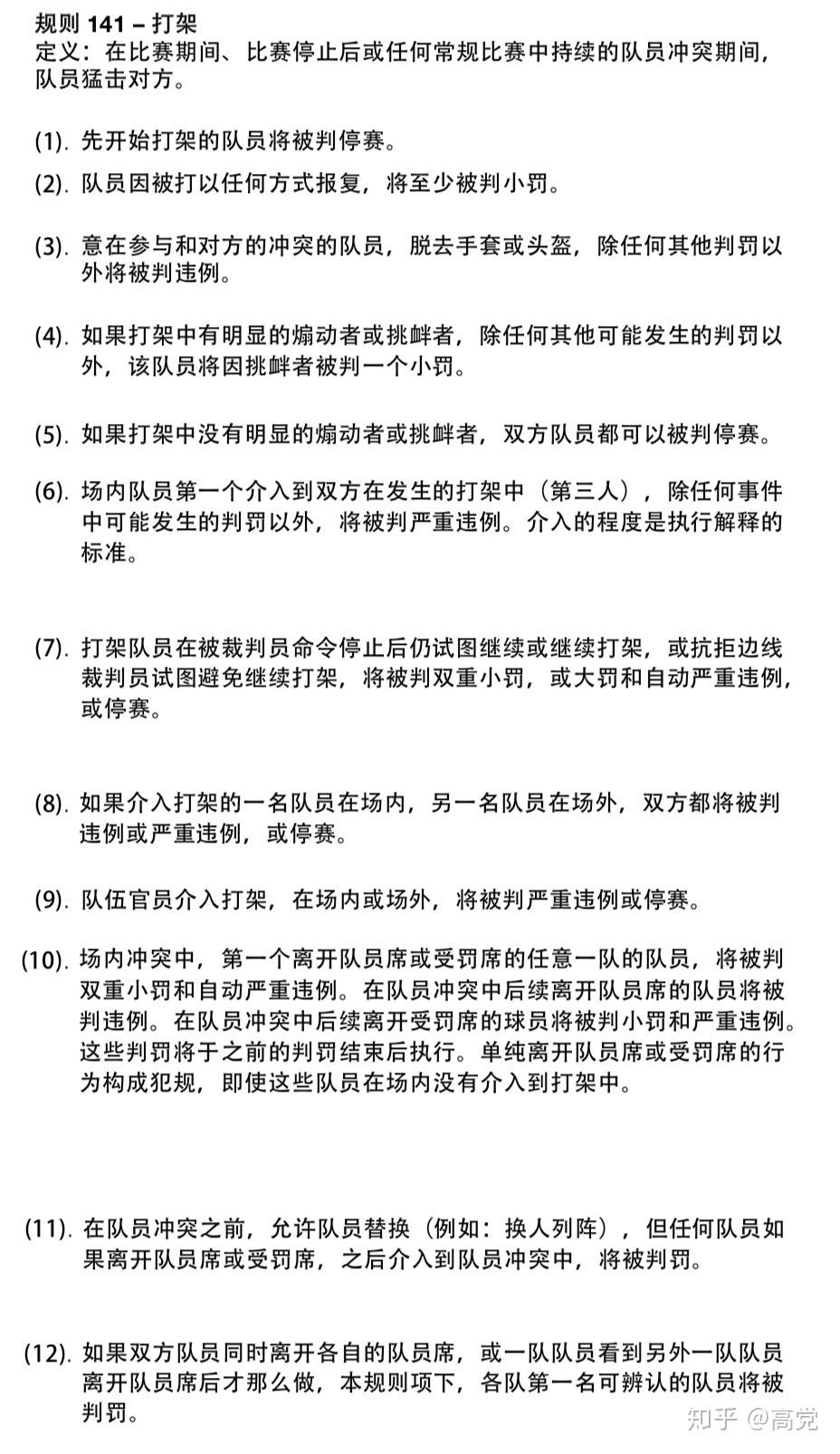 写一点大家都关注的问题关于冰球比赛的打架问题。都说冰球允许打架这个说法吧,也不是完全正确,只不过在 成人规则 中形成了单挑,裁判员可以不去拉架罢了,但是,打完之后还是要接受处罚的。因为太长了具体规则我就不手打出来了在下方