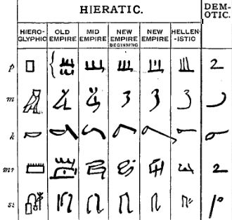 *:原文为hieratic,指的是僧侣体,古埃及时期书吏用来快速记录的手写体,与同一时期发展的圣书体有密切的关系。
