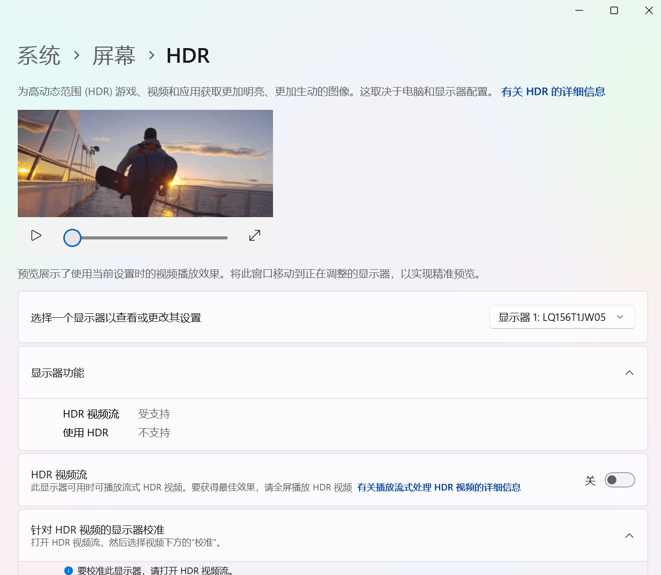 经过排查后发现 只要保持在win11的HDR设置的该界面 刷新率即可保持165HZ 而关闭此界面 刷新率就会降低为70HZ。