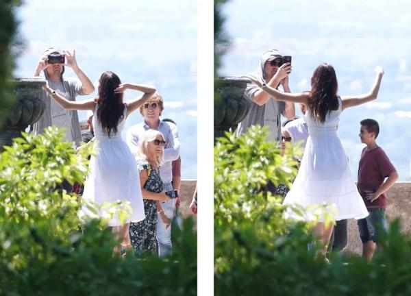 或是逛街时,小李子帮卡米拉整理裙子拉链 ↓