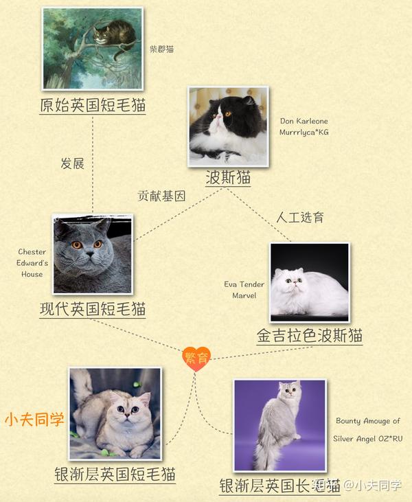 而通过英短和金吉拉色波斯猫的繁育,最先得到了银渐层色的英国短毛/长毛猫。