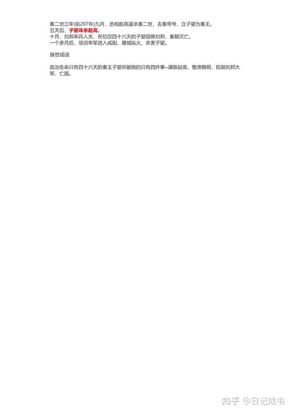 政治生命只有四十六天的秦王子婴所能做的只有四件事--谋除赵高,整肃朝纲,抵御刘邦大军,亡国。