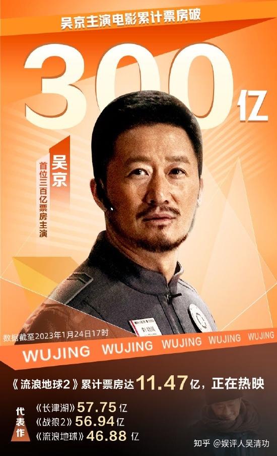 非著名娱评人吴清功指出:吴京“孝顺”的人设立住了,再来说吴京的“谦虚”人设。截至到1月24日下午5点41分,吴京个人总票房达到300亿元,成为内地首位电影票房破300亿的主演,第二名沈腾比吴京少了将近30亿。