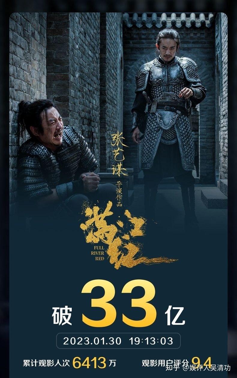 看点:张艺谋执导,沈腾和易烊千玺主演的电影《满江红》,票房已经突破33亿,领先第二名《流浪地球2》6亿多票房,猫眼预测该片最终票房超过45亿。