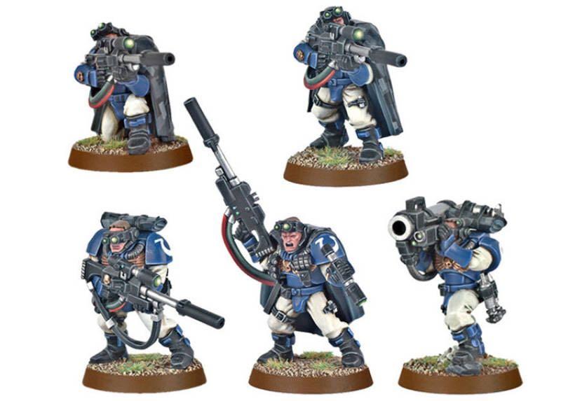然而,一眼看上去最大的区别在于这些新兵身着的不是SM标志性的动力盔甲,而是帝国正规部队——星界军里暴风突击兵的标配甲壳盔甲