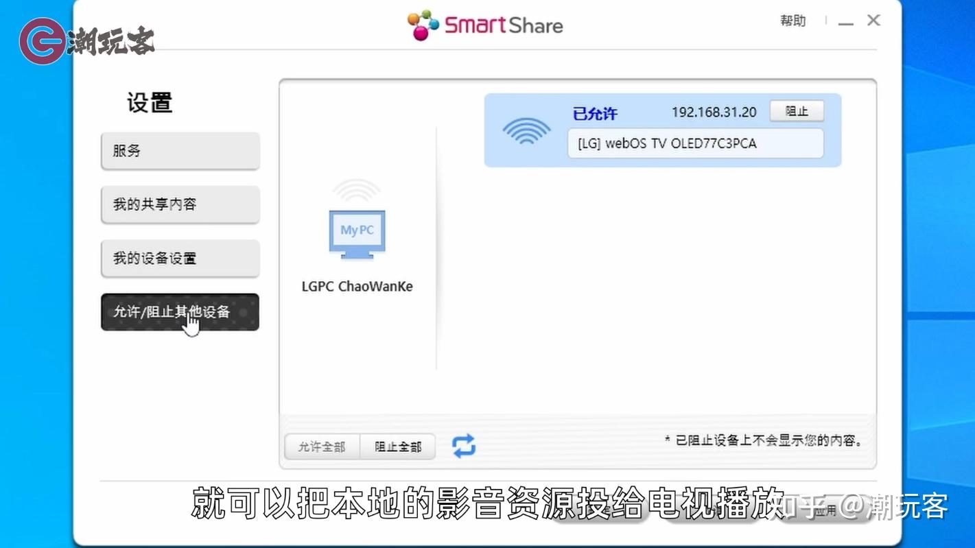 播放本地网络内容的话目前有两种方法,一是使用电脑投屏的方式,比如LG自家的Smart Share软件就可以把本地的影音资源投给电视播放。