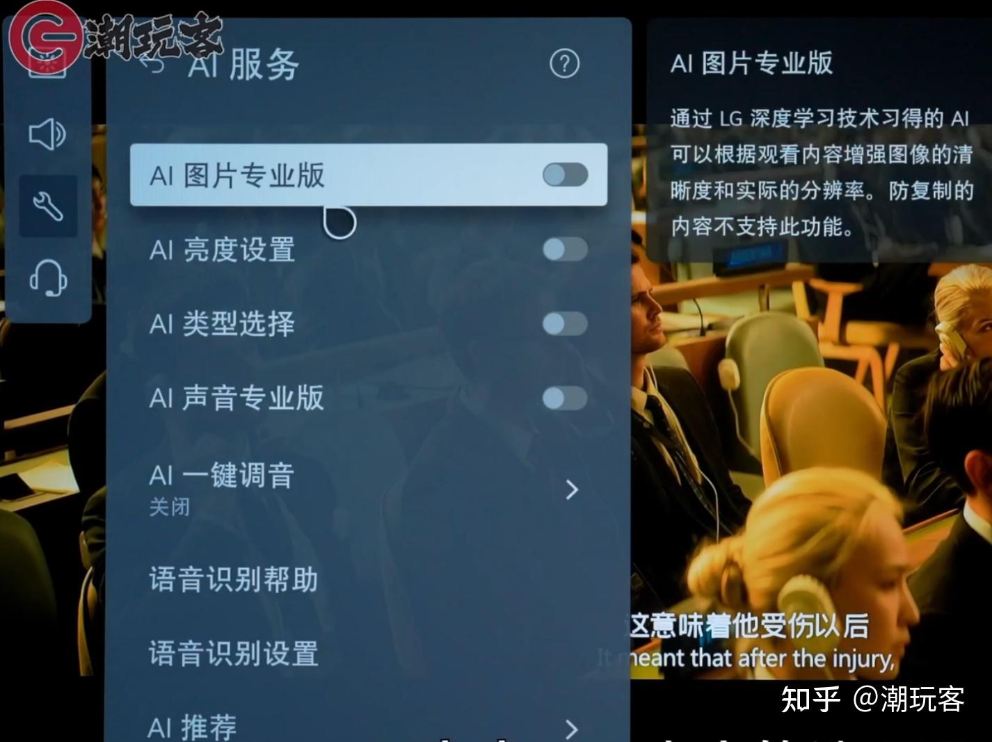 作为电视,对于画面的色彩还原就非常关键了,C3系列均搭载了LG自研的最新的α9 Gen 6 AI图像处理器,55寸及以上的型号还增加了亮度提升算法。菜单内也有相关的AI图像设定,包括AI学习的个性化画面模式,AI亮度、AI声音等选项可以选择。